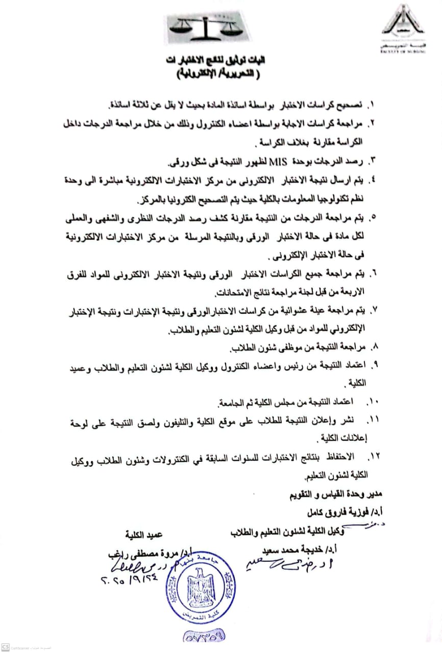 ضوابط عقد الاختبارات بالكلية 2023-2024