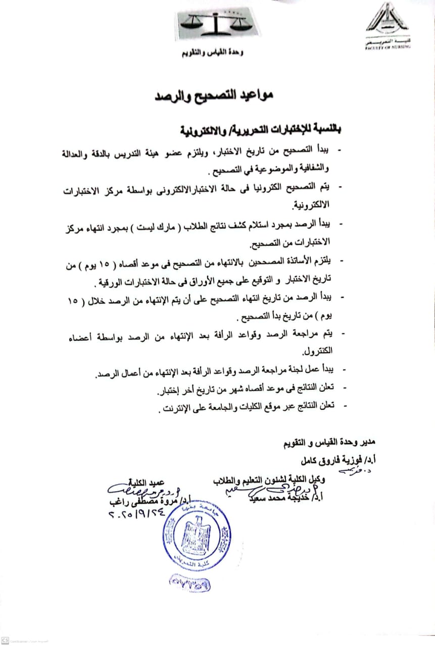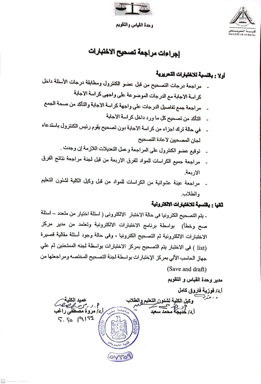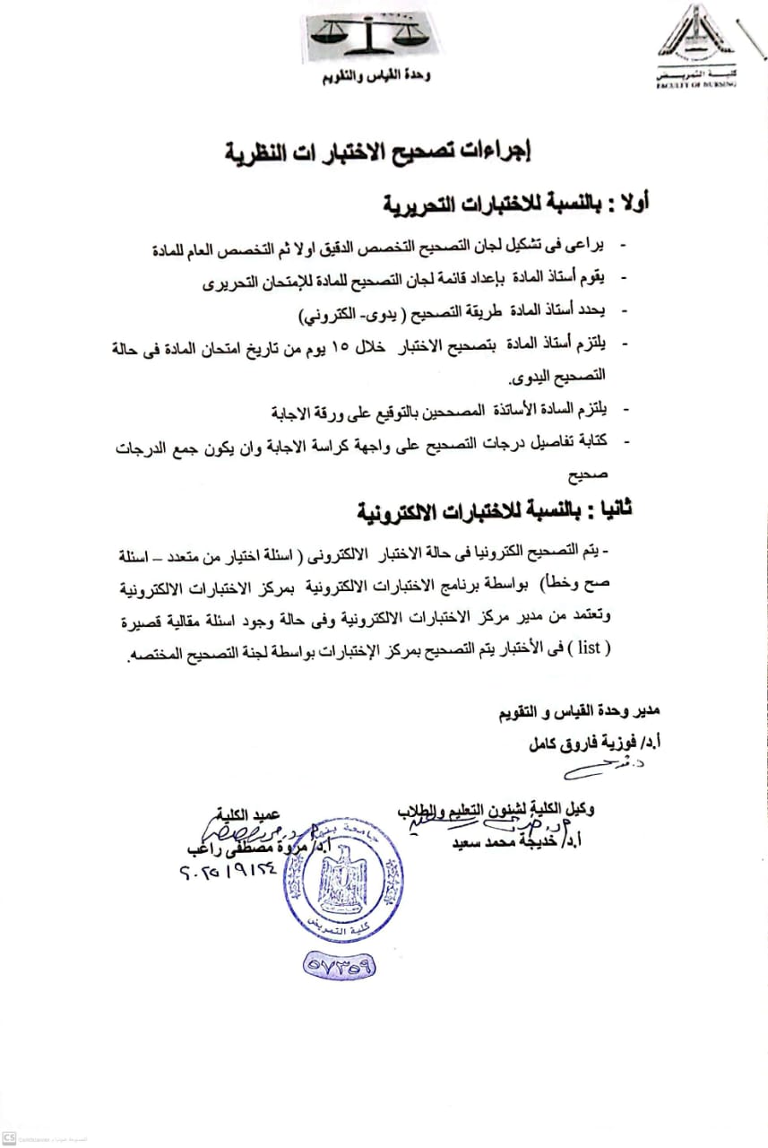 إجراءات تصحيح الاختبارات النظرية 2024-2025