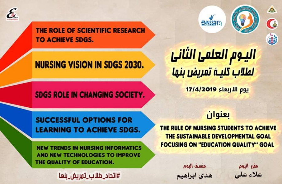 تحت رعايه أ. د هويدا صادق عميد الكليه وأ.د محبوبه صبحي وكيل الكليه لشؤن التعليم والطلاب سيتم عقد اليوم العلمى الثاني لطلاب كلية تمريض بنها يوم الأربعاء القادم 17/4/2019 والذى بعنوان: