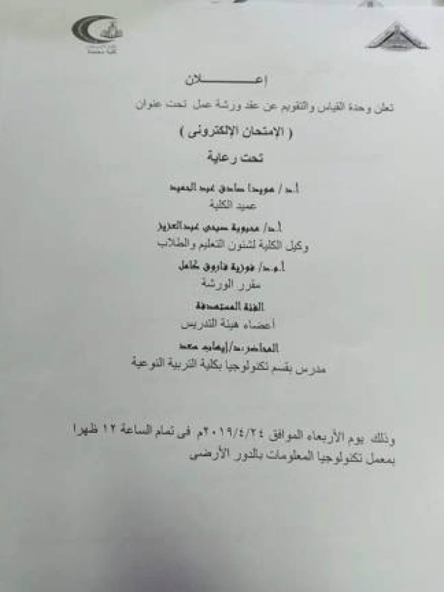 ورشة عمل تحت عنوان " الامتحان الالكترونى "