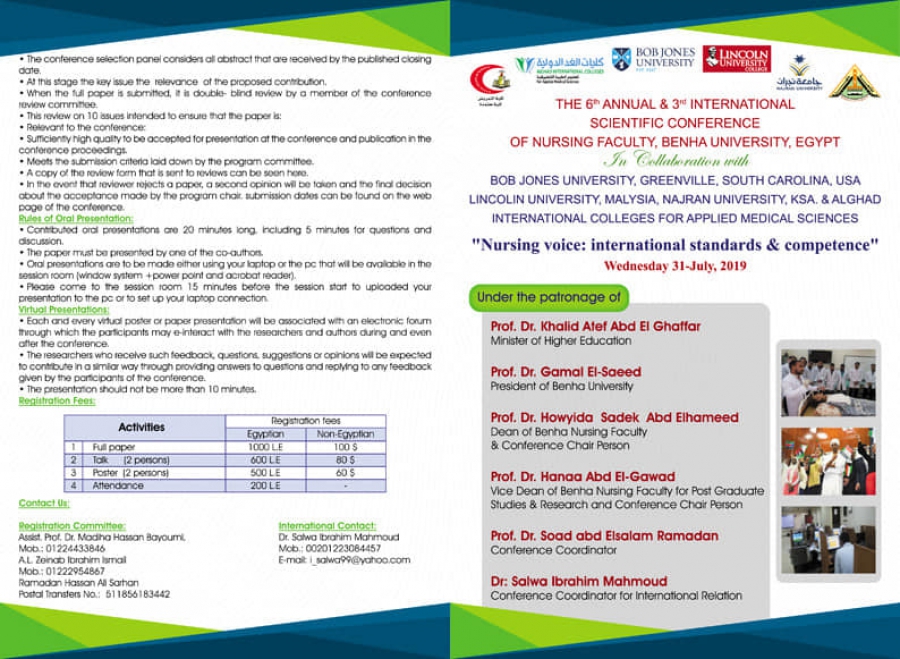 برشور المؤتمر العلمي السادس والدولي الثالث لكلية التمريض جامعة بنها بعنوان: