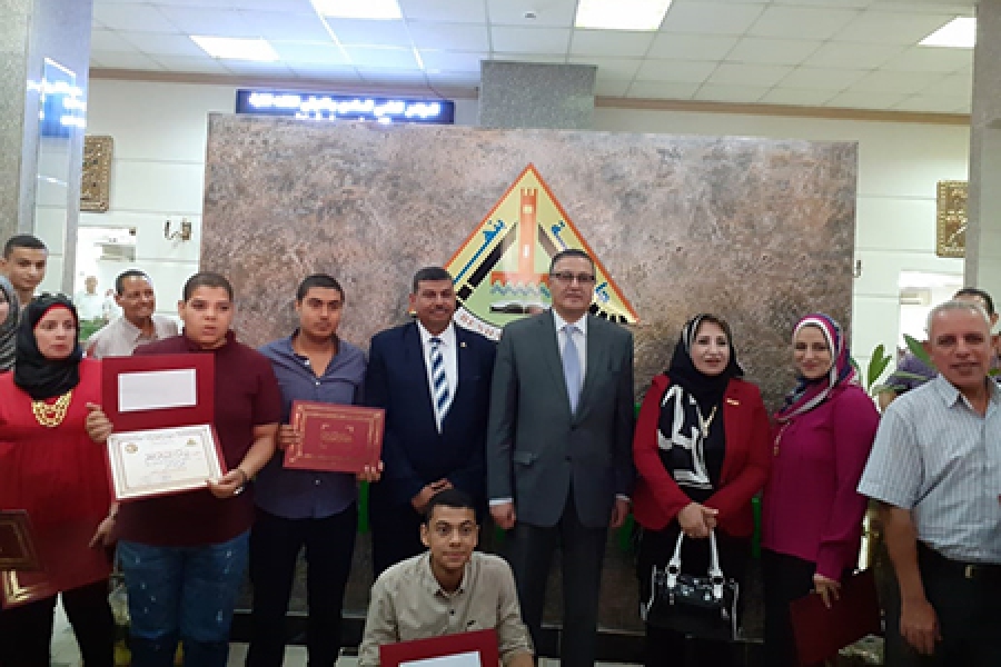 وفى نهاية الاحتفالية كرم رئيس الجامعة الطلاب المتفوقين من الحاصلين على الشهاده الاعداديه والشهاده الثانويه من ابناء العاملين وحملة الماجستير والدكتوراه من العاملين بالجامعة وتسليهم شهادات التقدير.