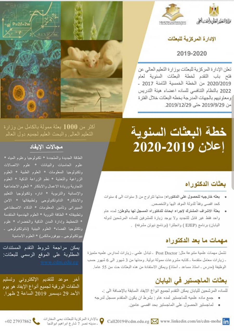 دلوقتي اعلنت فتح باب التقدم لخطة البعثات السنوية ٢٠١٩-٢٠٢٠