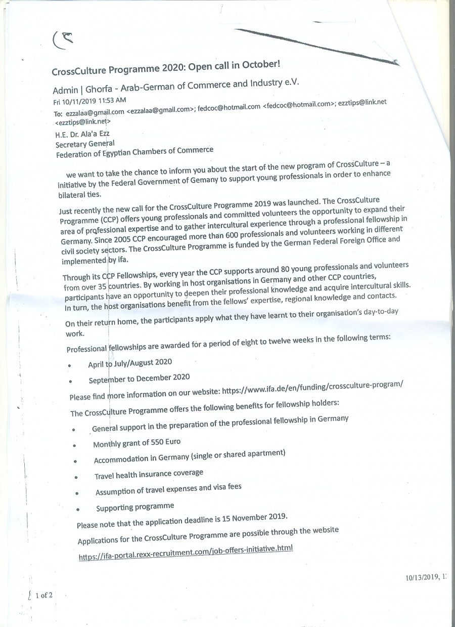 علما بان اخر موعدلتقديم الاستمارات يوم 15 نوفمبر 2019 وللتسجيل فى البرنامج يرجى زيارة الرابط التالى