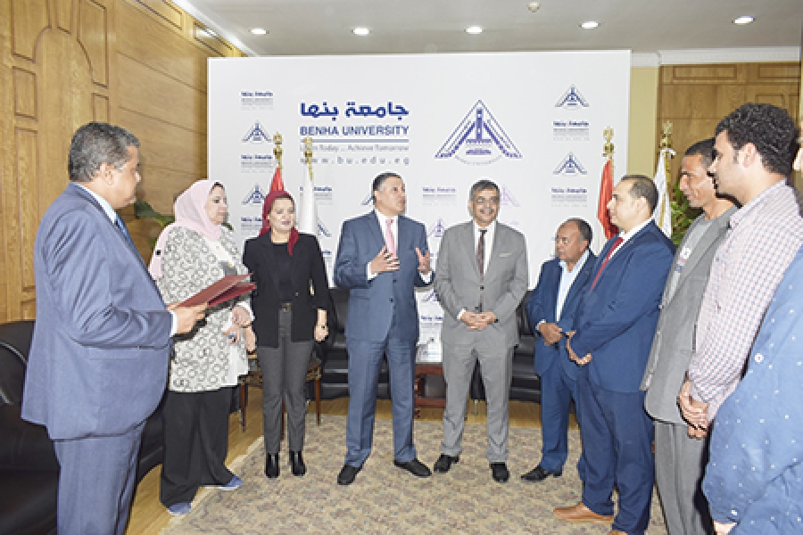 رئيس جامعة بنها يكرم المتميزين من افراد الامن الاداري