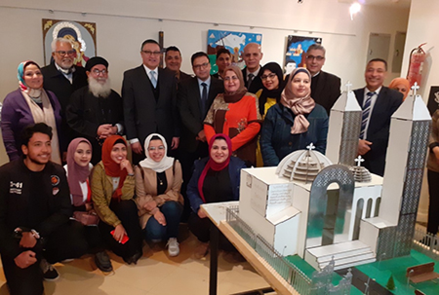 وقالت الدكتور علا طلعت المدرس بكلية التربية النوعية أن المعرض يأتي في إطار إحتفالات الأقباط بأعياد الميلاد المجيد مشيرة الي ان المعرض يضم من ١٠٠ قطعة فنية متنوعة كما يضم بعض المجسمات للكنائس من الخارج والداخل.