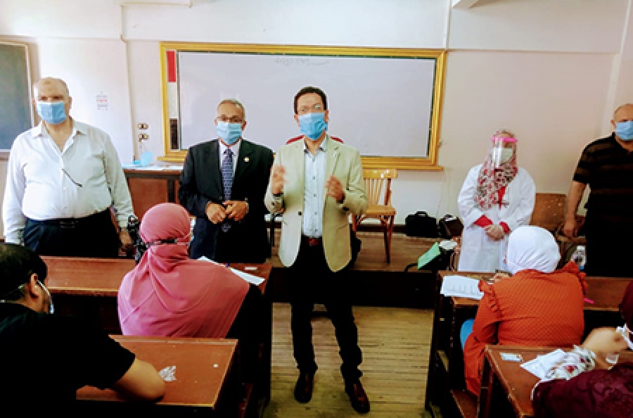 واطمأن الجيزاوى خلال الجولة على اللجان وحسن سير الامتحانات والالتزام بالإجراءات الوقائية والاحترازية التى اتخذتها الجامعة لمواجهة فيروس كورونا المستجد.