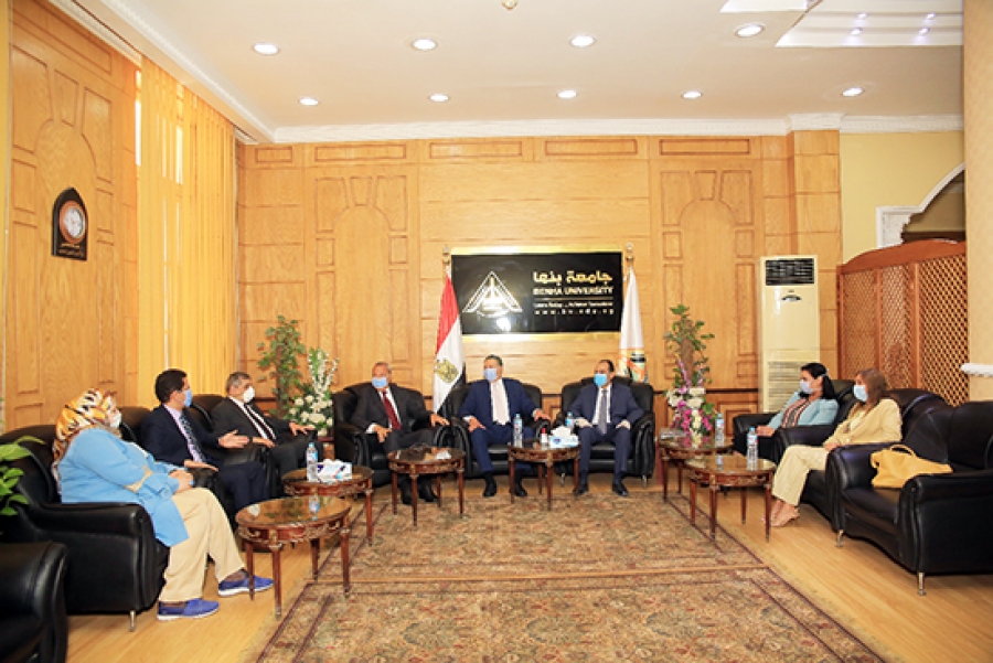 استقبل الدكتور/ جمال السعيد - رئيس جامعة بنها اليوم الدكتور/ محمد لطيف - أمين المجلس الأعلى للجامعات، بحضور اللواء/ عبدالحميد الهجان - محافظ القليوبية، والدكتور/ حسين المغربي - نائب رئيس الجامعة لشئون التعليم والطلاب، والدكتورة/ راندا مصطفي - نائب رئيس الجامعة لشئون خدمة المجتمع وتنمية البيئة، والدكتور/ ناصر الجيزاوي - نائب رئيس الجامعة للدراسات العليا والبحوث، وسامية عبد الحميد أمين عام الجامعة وذلك علي هامش انعقاد اجتماع المجلس الأعلى للجامعات في رحاب جامعة بنها.