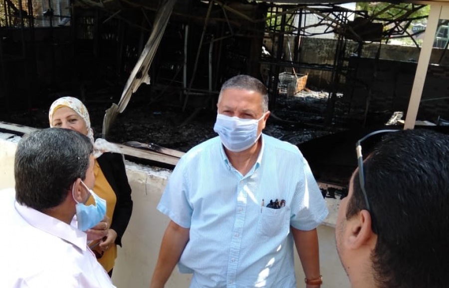 رئيس جامعة بنها يتفقد موقع حريق كافتيريا كلية التربية