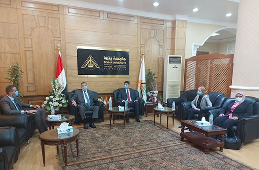 جاء ذلك خلال لقاء رئيس الجامعة مع الدكتور سمير حماد نائب محافظ القليوبية ووفدا من متدربي البرنامج الرئاسي لتأهيل التنفيذيين للقيادة على هامش البرنامج التدريبي المعد لهم لكافة القطاعات الإدارية والخدمية والمشروعات بنطاق المحافظة.