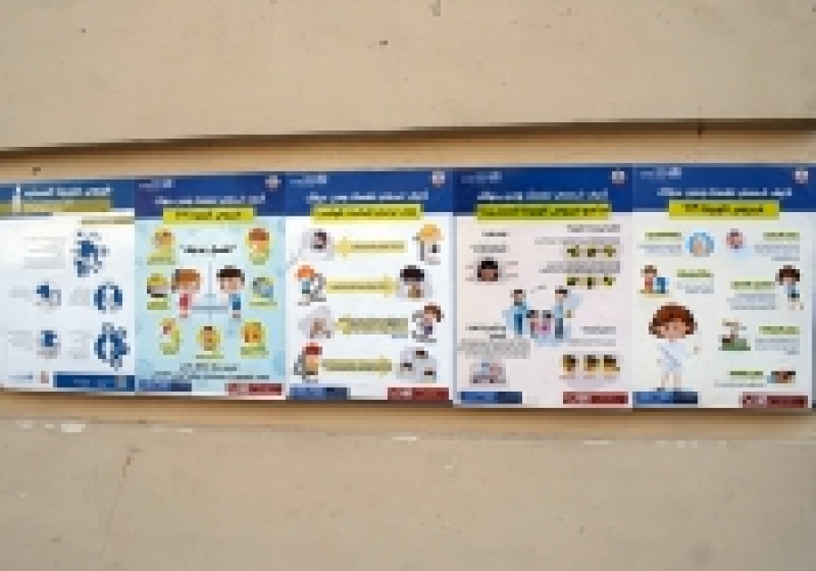 من ناحية اخرى قامت لجنة التطوير والتوعية المنبثقة من وحدة الازمات والكوارث بتوزيع الملصقات علي ادارة الجامعة والكليات والمستشفيات الجامعية والمدن الجامعية
