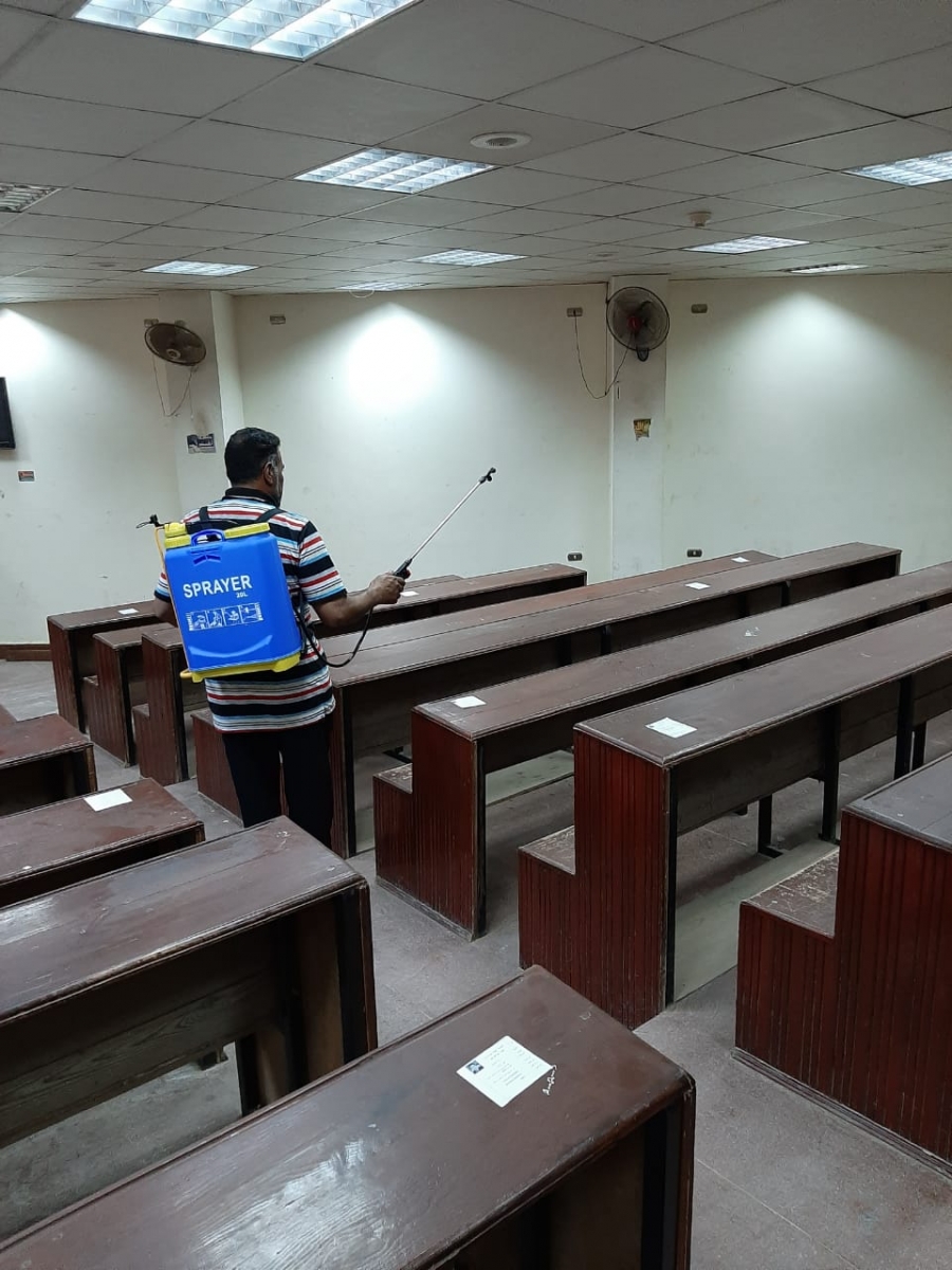حرصا من محافظة القليوبية على تعقيم وتطهير المؤسسات الحكومية داخل المحافظة فقد تم تعقيم وتطهير مبنى كلية التمريض يوم الاربعاء الموافق 22/4/2020 وذلك تحت رعاية اللواء عبد الحميد الهجان - محافظ القليوبية والأستاذ الدكتور / جمال السعيد - رئيس جامعة بنها الأستاذ الدكتور/هويدا صادق عبدالحميد - عميد الكلية وفى حضور الأستاذ الدكتور/ محبوبة صبحى عبدالعزيز - وكيل الكلية لشئون التعليم والطلاب والأستاذ / أحمد منصور - مدير الكلية والسادة العاملين بالكلية