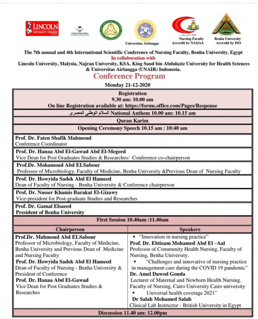 المؤتمر العلمي السابع والدولي الرابع والأول لكلية التمريض جامعة بنها online