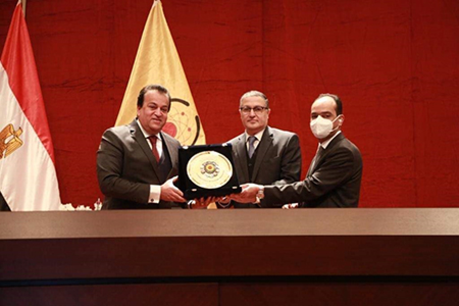 من جانبه قام وزير التعليم العالي بإهداء "السعيد" درع المجلس الأعلى للجامعات وذلك تقديرًا لعطائه ودوره في إثراء العمل الأكاديمى والجامعي داخل الجامعة.