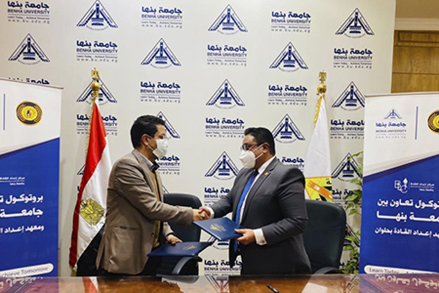 وقع الدكتور/ ناصر الجيزاوى - القائم بأعمال رئيس جامعة بنها، والدكتور/ كريم حسن همام - مدير معهد إعداد القادة بحلوان، بروتوكول تعاون مشترك بين الجامعة والمعهد للعام الثانى على التوالى، تحت رعاية الدكتور/ خالد عبدالغفار - وزير التعليم العالي والبحث العلمي ورئيس مجلس إدارة معهد إعداد القادة.
