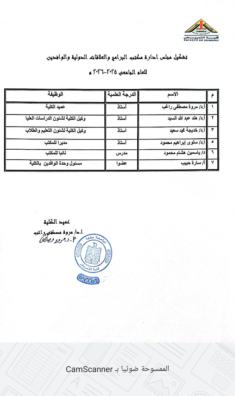 تشكيل مجلس ادارة مكتب البرامج والعلاقات الدولية والوافدين للعام الجامعى 2025-2026