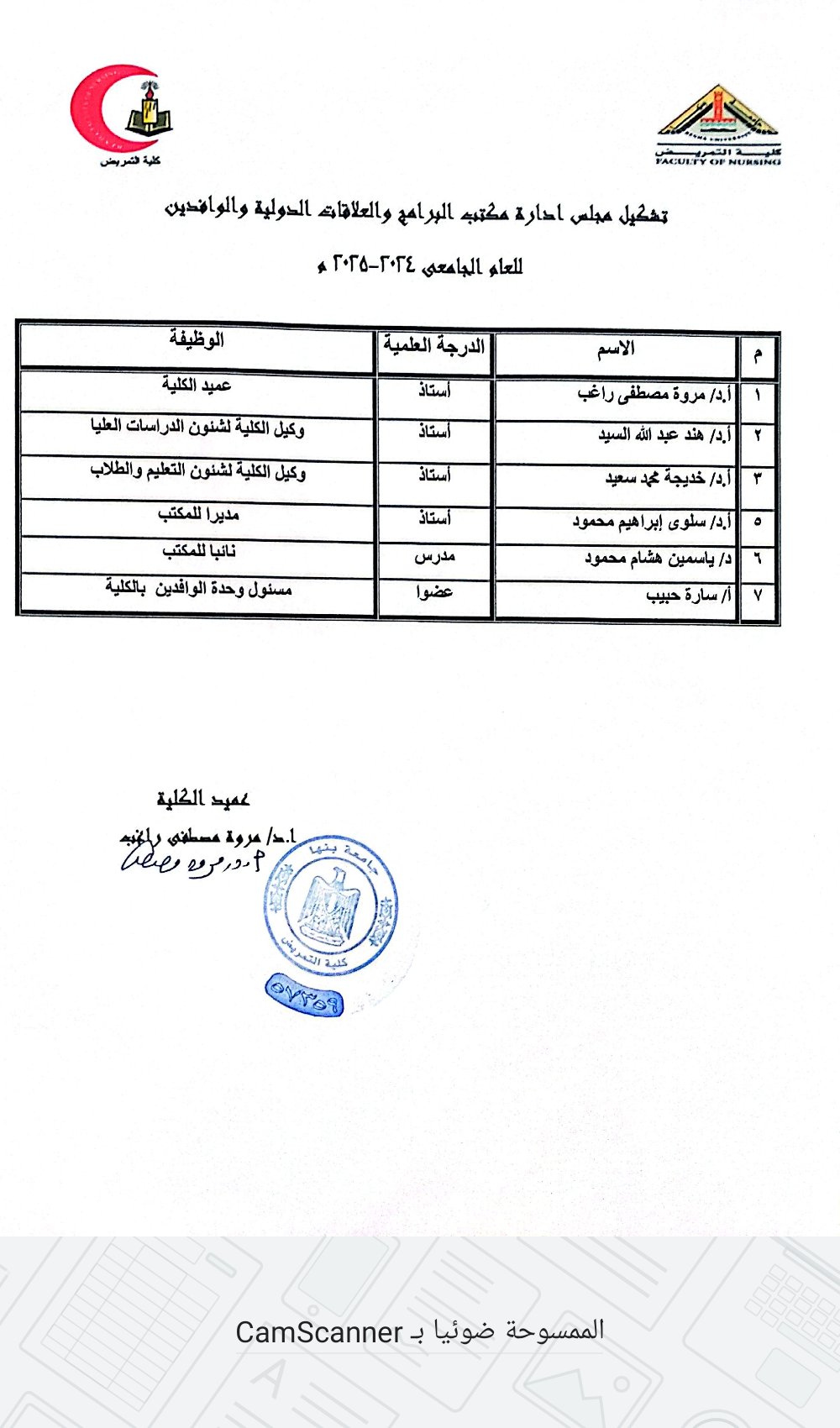 تشكيل مجلس ادارة مكتب البرامج والعلاقات الدولية والوافدين للعام الجامعى 2024-2025